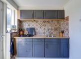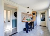 Via de zijkant van de woning stapt u binnen in de hal met tegelvloer. Vanuit de hal krijgt u aan de rechterzijde toegang tot de keuken met o.a. een gaskookplaat, koelkast, combimagnetron en een vaatwasser. De keuken is niet alleen een fijne plek om te koken, maar via de achterdeur bent u zo in de ruime tuin. Achterin de keuken vindt u bovendien een praktische bijkeuken, ideaal voor extra opslag en voorzien van de opstelplaats voor de cv-ketel en de aansluitingen voor de wasapparatuur.