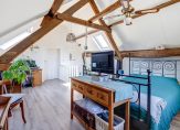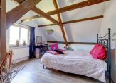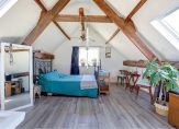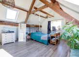 De trap leidt u direct naar een verrassend ruime, riante slaapkamer van maar liefst circa 5,66 x 4,83 m. Vanuit deze kamer heeft u tevens toegang tot een tweede, eveneens royale slaapkamer van circa 3,75 x 5,08 m. Ideaal als kinderkamer, werkruimte of logeerkamer.