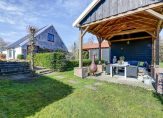 – In de achtertuin staat een sfeervolle overkapping waar u heerlijk kunt zitten, met direct ernaast een praktische berging voor extra gemak;