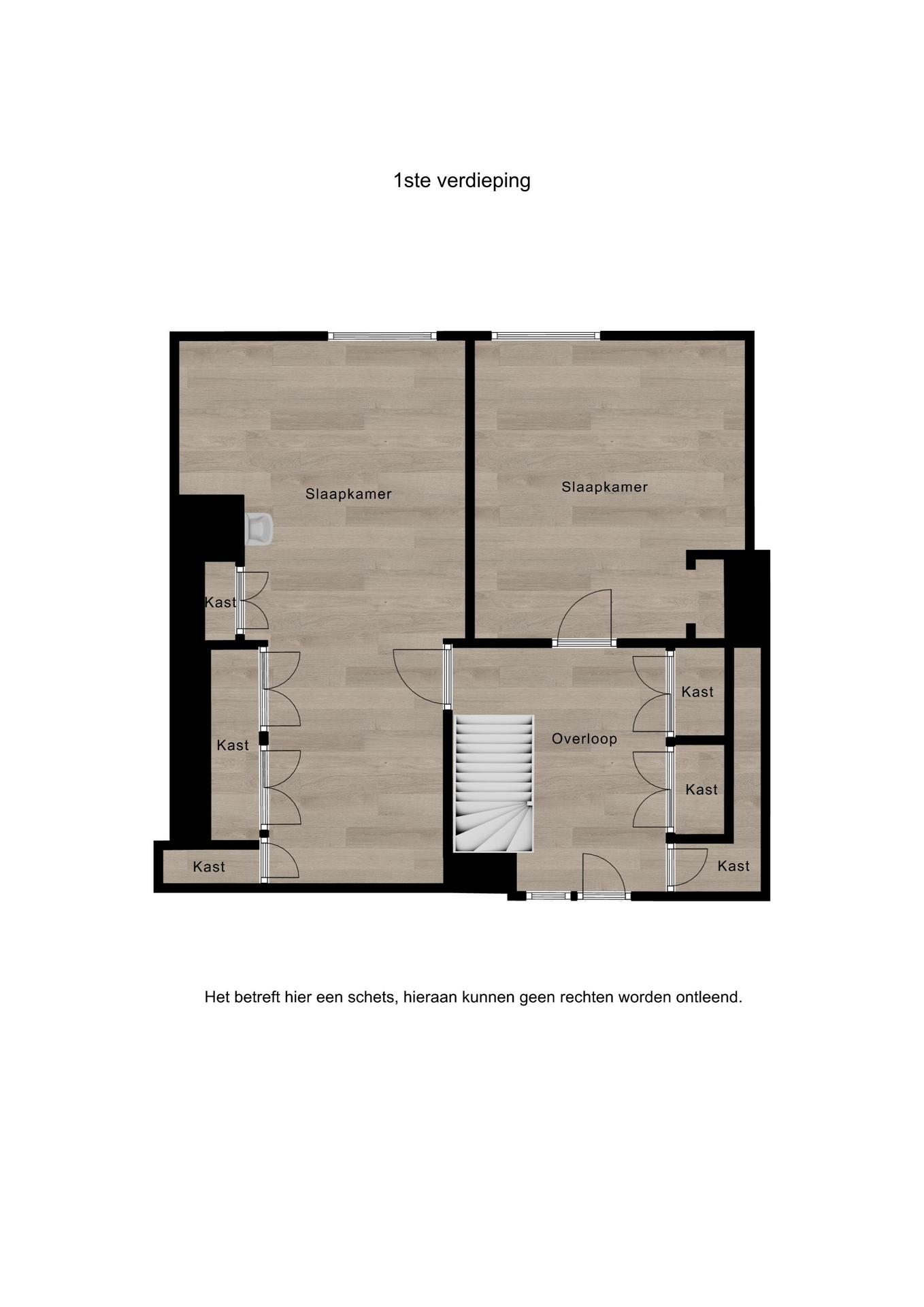 1e verdieping: v.v. laminaat, overloop met veel kastruimte, 2 slaapkamers (ca. 677×215 en 375×300). De verdieping is anders in te delen zodat er boven 3 slaapkamers kunnen worden gecreëerd.