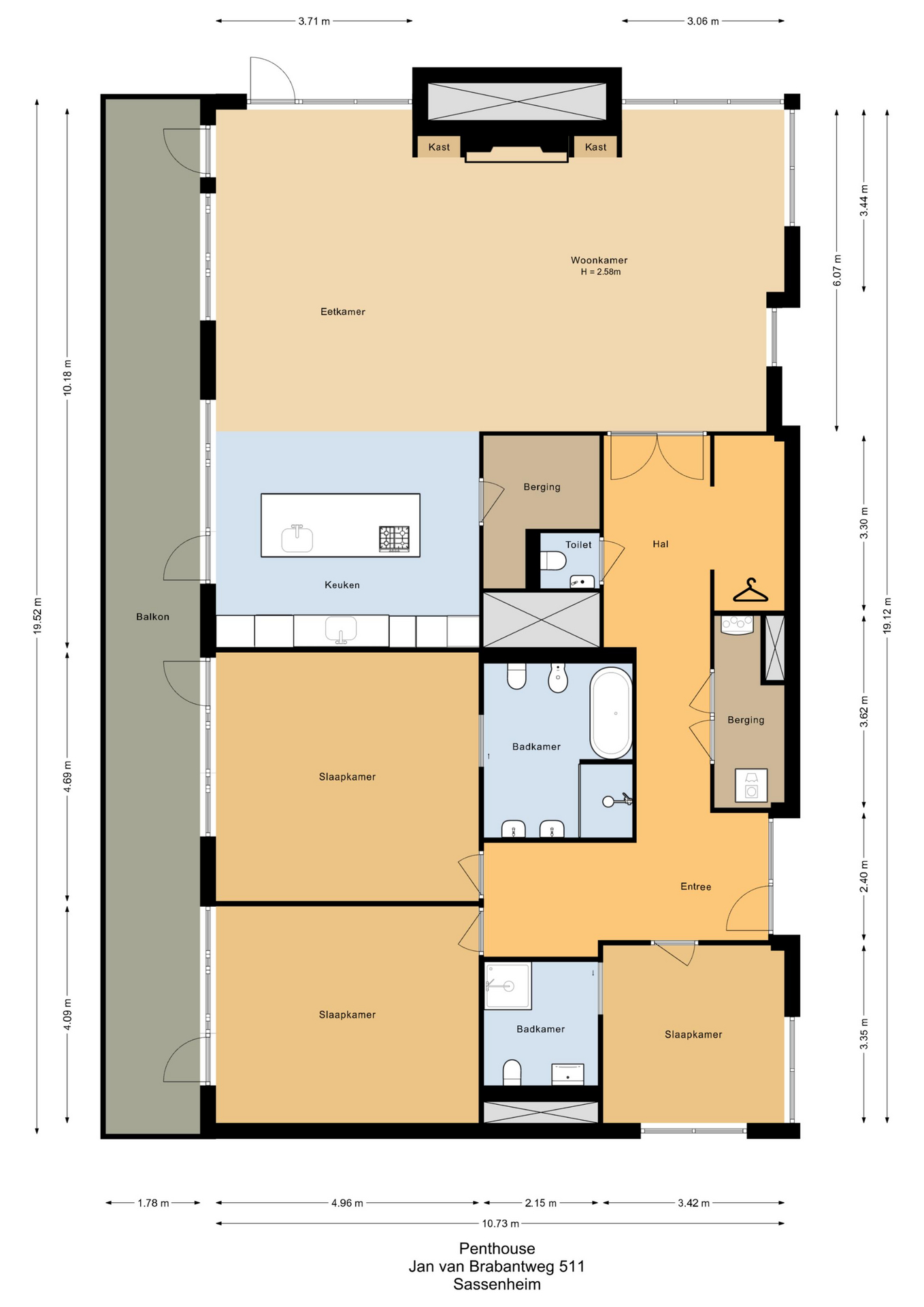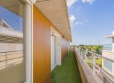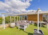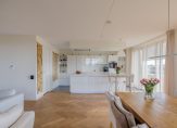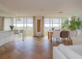 Het beschikt over 3 slaapkamers, 2 en-suite badkamers, een lichte living met grote raampartijen, een open keuken in wit hoogglans met kookeiland en aansluitend een berging. Twee van de ruime slaapkamers hebben deuren naar het dakterras en het gehele appartement is voorzien van een houten visgraat vloer met comfortabele vloerverwarming.