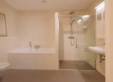 De 1e en-suite badkamer heeft een heerlijk ligbad, dubbele wastafels, inloopdouche, toilet en bidet. De 2e en-suite badkamer heeft een douche, wastafel en een toilet. Op de overloop is nog een toiletruimte, gaderobe en een berging met aansluitingen voor wassen en drogen.