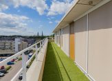 Dankzij de glazen windschermen zit u hier beschut en met het grote zonnescherm over de volledige breedte van het appartement verlengt u ‘s zomers uw living naar buiten. En dat alles met een prachtig vrij uitzicht over Sassenheim en de omgeving.
