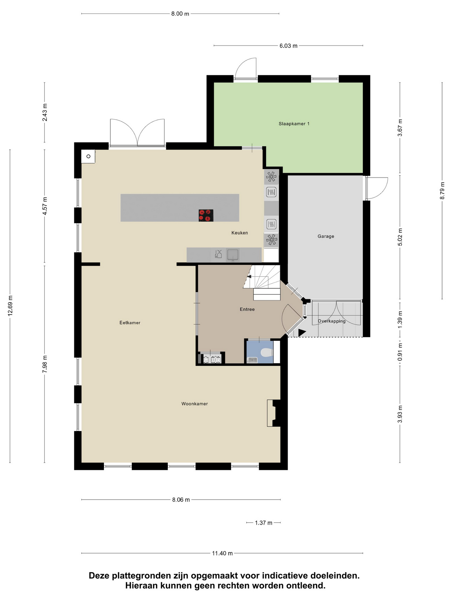 -Ruime garage (inpandig bereikbaar);