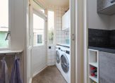 De woning heeft veel lichtinval dankzij de brede raampartijen en openslaande deuren naar de achtertuin, die op het oosten ligt. De aanbouw aan de zijkant en de uitgebouwde bijkeuken zorgen voor extra ruimte, en ook de ligging op de hoek draagt bij aan het gevoel van vrijheid en ruimte. Op de eerste verdieping vind je drie ruime slaapkamers en de badkamer, en op de tweede verdieping is een vierde slaapkamer met dakkapel gerealiseerd.
