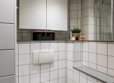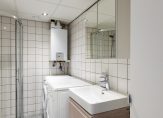 De keurige badkamer is geheel betegeld en is voorzien een ruime douchehoek, hangend toilet en wastafelmeubel met spiegelkast. Tevens zijn hier de wasmachine en droger weggewerkt.