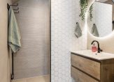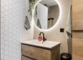 De moderne badkamer is in 2022 compleet vernieuwd en voorzien van een fijne inloopdouche met easydrain en speelse nis, wastafelmeubel met verlichtbaren spiegel en inbouwspots.