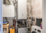 De inpandige berging is voorzien van de opstelling voor de bodemwarmtepomp, elektrische boiler, WTW-installatie, aansluiting voor wasmachine/wasdroger en voldoende bergruimte.