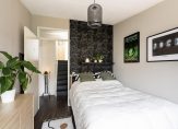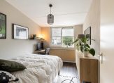 Vanuit de hal, met veel lichtinval door glazen wandafscheiding, wordt de toegang verstrekt tot de eerste twee slaapkamers, die gelegen zijn aan de achterzijde van de woning. De slaapkamers hebben een oppervlakte van ruim 10 en bijna 9 m² en zijn voorzien van strakke wand- en vloerafwerking en houten kozijnen met dubbel glas.
