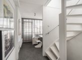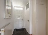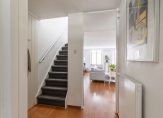 Overdekte entree met ruime ontvangsthal, trappenhuis, meterkast en toilet.