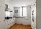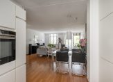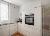 De royale woonkamer biedt volop leefruimte en staat in direct contact met de fraai aangelegde achtertuin. Hier geniet u van een prachtig vrij uitzicht over de singel en de parkachtige omgeving. De grote raampartijen en tuindeur zorgen voor veel lichtinval en een fijne verbinding tussen binnen en buiten. Aan de voorzijde bevindt zich de ruime open keuken, perfect om uitgebreid te koken terwijl u contact houdt met uw gezelschap.