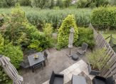 Heerlijke achtertuin circa 90 m² fraai aangelegd met meerdere terrassen, houten erfafscheidingen, groene borders, houten vlonder terras gelegen aan singel in groene omgeving metveel privacy. Hier is ook de garage middels een loopdeur bereikbaar.