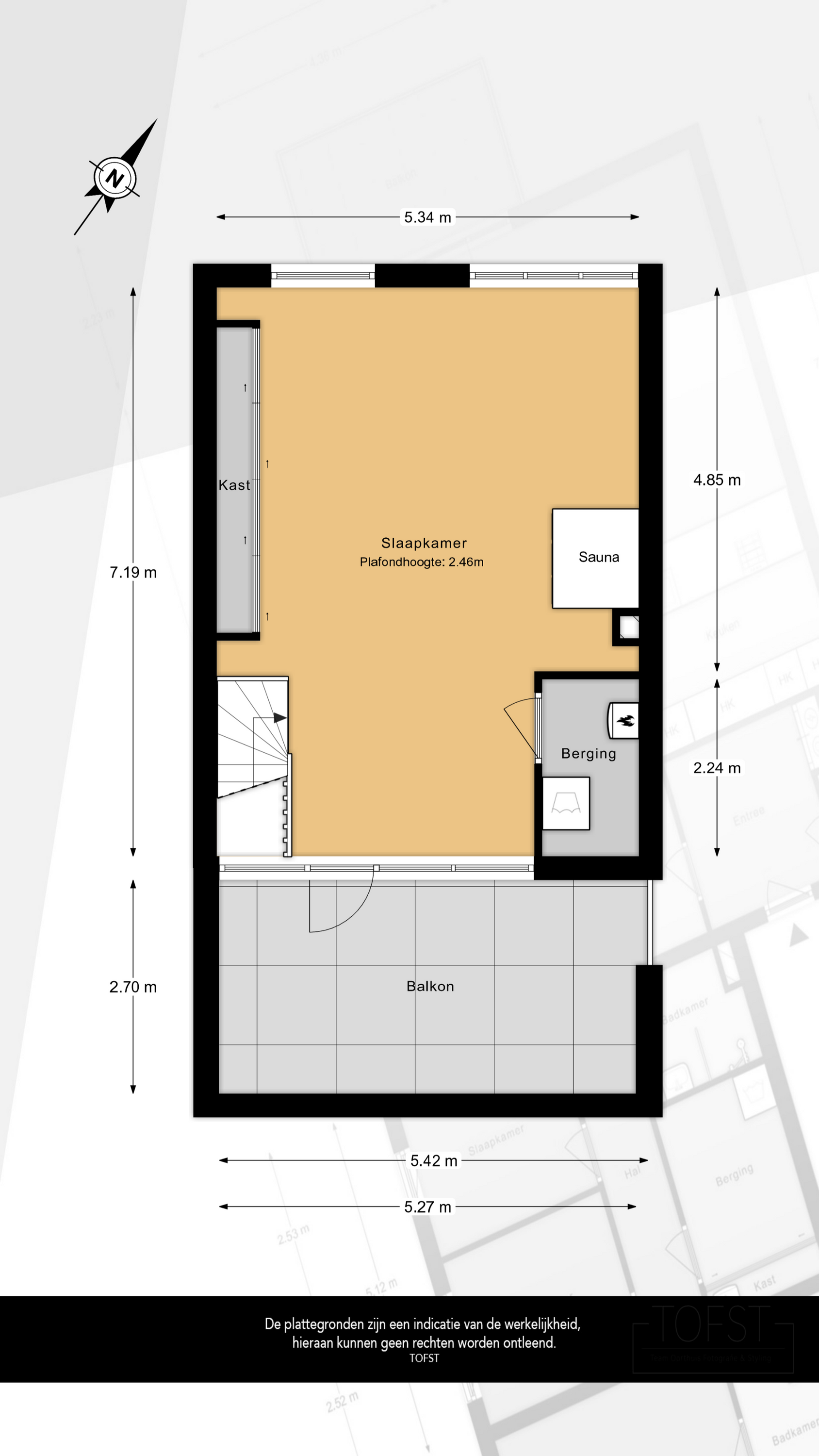 Open ruimte circa 38 m², eenvoudig in te delen in 2 slaapkamers met mogelijk een 2e badkamer.