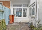 De riante L vormige woonkamer is op de begane grond gelegen. Deze fijne ruimte is voorzien van een gestorte betonvloer met isolatie en een laminaatvloer met hoge plintafwerking. De wanden en het plafond zijn strak afgewerkt, de kozijnen zijn van kunststof met dubbel glas. Middels de bijkeuken aan de achterzijde wordt de toegang verstrekt tot de knusse achtertuin, welke is voorzien van een ruime berging en achterom. Door de fijne ligging kunt u heerlijk van het zonnetje genieten.
