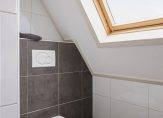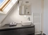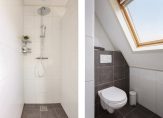 Badkamer voorzien van regendouche, wastafel en 2e toilet. Het object beschikt over drie slaapkamers (ca. 10m², 11m² en 15m²).