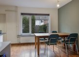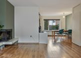 De mooie laminaatvloer ligt niet alleen in de hal, maar ook in de woonkamer en keuken. Grote ramen aan de voor- en achterzijde zorgen voor veel lichtinval in de woonkamer, die een mooie indeling heeft. Het zitgedeelte met open haard is aan de voorzijde en het eetgedeelte grenst aan de halfopen keuken.