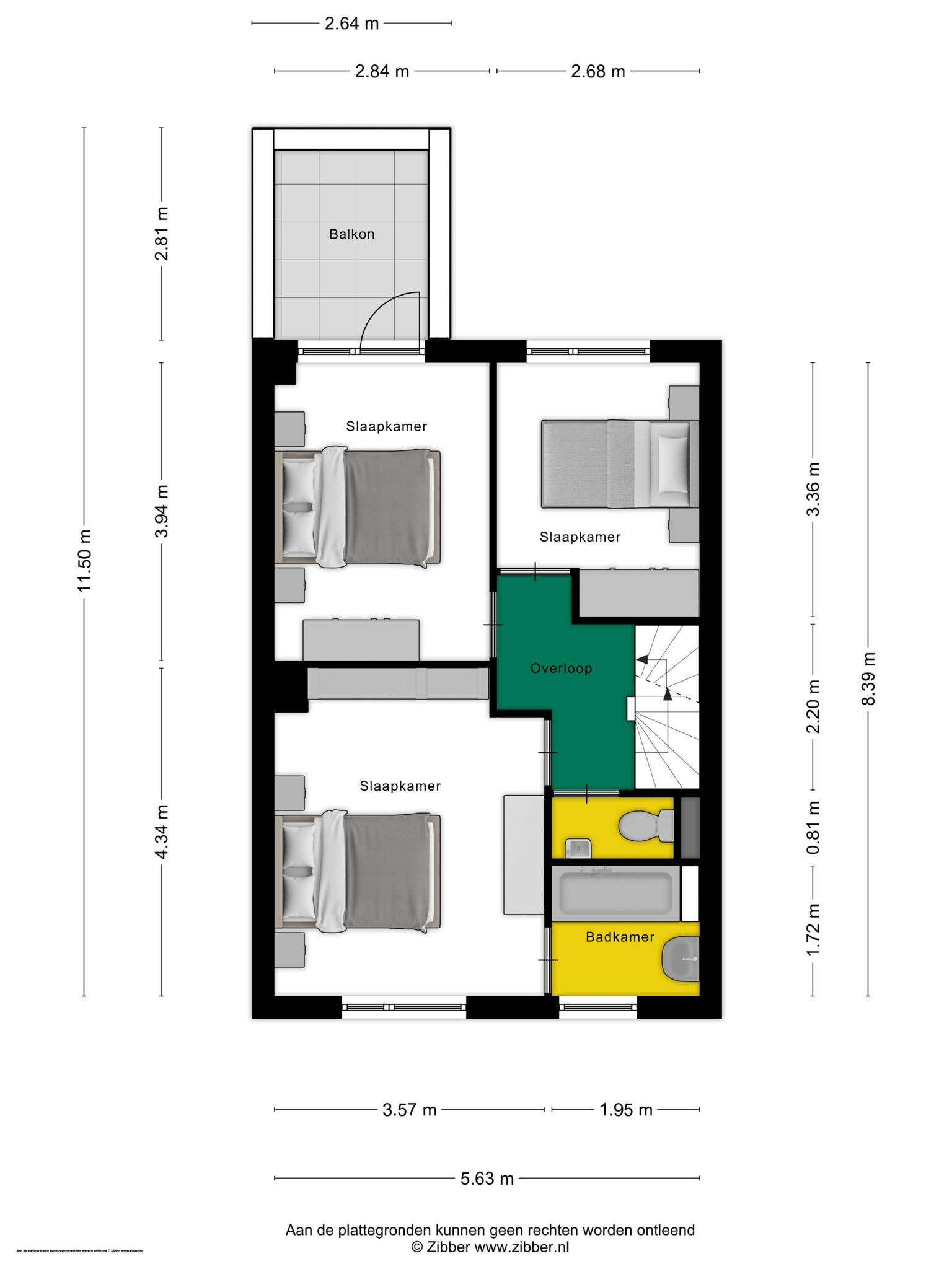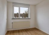 Aan de achterzijde zijn twee slaapkamers, waarvan een met een balkon. In alle slaapkamers ligt, net als op de overloop, laminaat op de vloer.