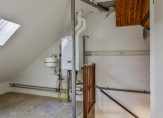 Er is een vaste trap naar de tweede verdieping, waar als eerste een overloop/berging is. Hier hangt, naast de trap, de HR-ketel en aan de achterzijde is een dakvenster geplaatst.