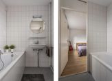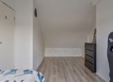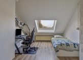 Verder zijn er een ruime slaapkamer en een tweede badkamer op deze verdieping. De badkamer is ingedeeld met een douche en wastafel. In de slaapkamer zorgt een groot dakraam voor veel lichtinval en ook in deze kamer ligt laminaat op de vloer.