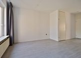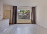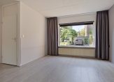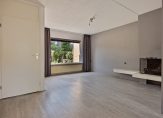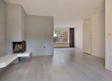 De woonkamer heeft een speelse indeling met grote ramen aan de voor- en achterzijde, waarbij de ramen aan de voorzijde aan de zuidkant zijn. Er ligt, net als in de hal en keuken, laminaat op de vloer en een van de sfeermakers is de schouw met open haard.