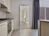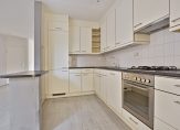 Via het eetgedeelte loop je de halfopen keuken in, waar een lichte hoekopstelling staat. Deze keuken biedt veel bergruimte en de gaskookplaat, afzuigkap, oven, vaatwasser, koelkast en vriezer zijn ingebouwd.