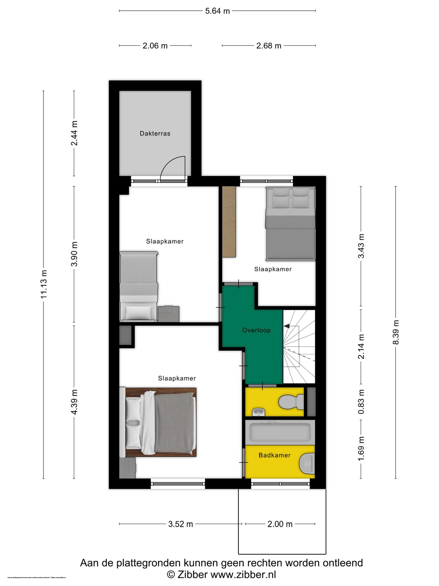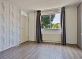Aan de achterzijde zijn twee ruime slaapkamers, waarvan een met een deur naar het dakterras boven de bijkeuken. De derde, tevens grootste slaapkamer is aan de voorzijde. In alle slaapkamers ligt, net als op de overloop, laminaat op de vloer.