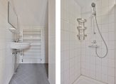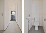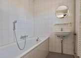 Aan de overloop grenzen niet alleen de slaapkamers, maar ook een ruime toiletruimte met fonteintje. Vanuit de slaapkamer aan de voorzijde is de badkamer te bereiken, ingedeeld met een ligbad en een wastafel.