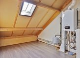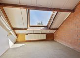 Een vaste trap geeft toegang tot de tweede verdieping, waar je als eerste op de overloop komt. Hier hangt, naast de trap, de HR-ketel uit december 2023. Verder zijn er een ruime slaapkamer en een tweede badkamer op deze verdieping. De slaapkamer met groot dakraam dient nog afgewerkt te worden en de badkamer is ingedeeld met een douche en wastafel.