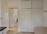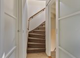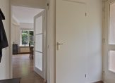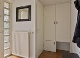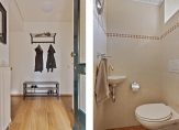Links in de hal zijn de toiletruimte met fonteintje en een op maat gemaakte inbouwkast, die een breedte van meer dan 1.20 meter heeft. De laminaatvloer ligt niet alleen in de hal, maar op de hele begane grond.