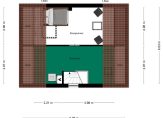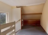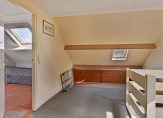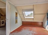 Er is een vaste trap naar de tweede verdieping, waar nog twee grote ruimtes zijn. Als eerste is er de overloop, waar de HR-ketel hangt en de wasmachine kan staan. Voor een bureau is genoeg ruimte, dus de overloop kan als werk-/studeerplek worden gebruikt. Aansluitend is de vierde slaapkamer met twee dakramen en, net als de overloop, bergruimte in de schuinte van het dak.
