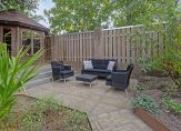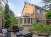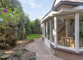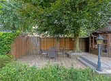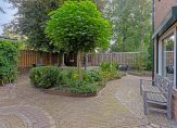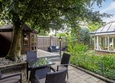 Een van de pluspunten van deze woning is de zeer ruime tuin aan drie zijden, boordevol privacy en met fraai uitzicht naar de hoge bomen in het naastgelegen plantsoen. Terwijl je in de tuin loopt zie je sierbestrating, mooi aangelegde borders met gevarieerde beplanting. Bomen zorgen voor schaduwplekken, waardoor je kunt kiezen of je in de zon of schaduw wilt zitten. De stenen berging biedt ruimte aan het tuingereedschap en er is een poort naar de steeg. Aan de andere kant van de tuin staat een zeshoekig tuinhuis, die als berging of overdekt terras gebruikt kan worden.
