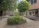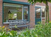 Begane grond: Vanaf het pleintje loop je naar het autovrije pad, richting deze prachtige twee-onder-een kapwoning. Aan de buitenzijde zie je niet alleen een mooie tuin, maar ook de grote serre.
