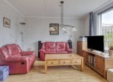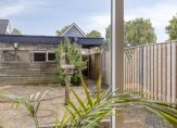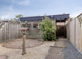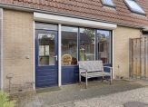 Parkeer de auto en loop, via de grotendeels bestrate voortuin, naar de overdekte entree van deze leuke woning. Hier zie je de voordeur links van het bankje, en rechts van het bankje is een deur naar de keuken.