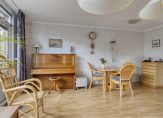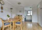 De tuingerichte woonkamer is goed in te delen met een zithoek, de eettafel en voor muziekliefhebbers is er plek voor een piano. Er ligt laminaat op de vloer en de plafondlijsten geven de woonkamer net dat beetje extra. Kies je voor behang of laat je de wanden stucen?