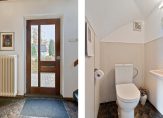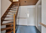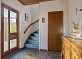 Voordat je naar de entree loopt, kijk even naar het mooie glas-in loodraam in de voorgevel. Dit geeft al aan dat dit een huis met karakter is. In de hal, naast de trapopgang, is de toiletruimte met fonteintje en aan de andere kant is de garderobe.