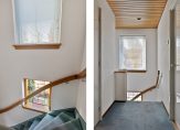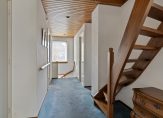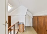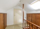 Als je naar boven loopt, heb je een tweede kans om het kleurrijke glas-in loodraam in de voorgevel te bekijken. Eenmaal boven sta je op een ruime overloop, met een inbouwkast en een steile vaste trap naar de tweede verdieping.