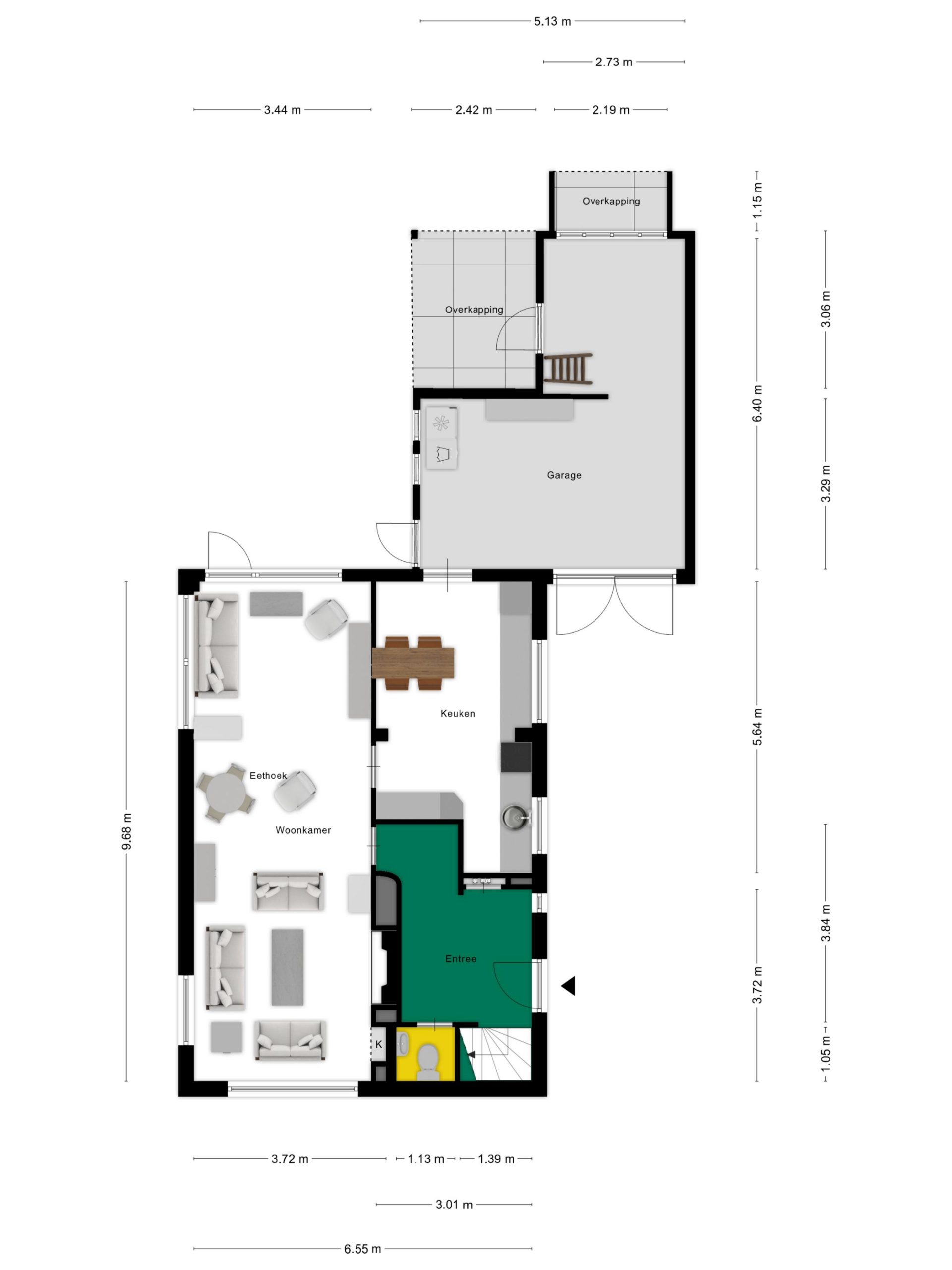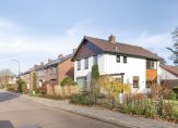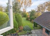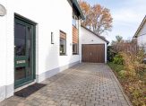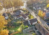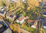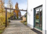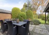 Vanaf de openbare weg kijk je naar de voortuin, naar de oprit voor meerdere auto’s en een stukje van de zijtuin. Wat je echter niet ziet, is de diepe achtertuin die veel privacy biedt. Het terras is van groot formaat en de overkapping bij de garage kan ook als terras worden gebruikt.