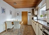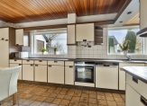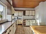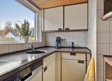 Naast de woonkamer is de verrassend ruime keuken, waar genoeg plek is voor een eet-/ontbijttafel. De zeer royale keukenopstelling is voorzien van diverse inbouwapparatuur: een keramische kookplaat, afzuigkap, oven, vaatwasser en een koelkast.