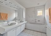 De eerste badkamer, die ook vanuit de master bedroom te bereiken is, biedt ruimte aan een ligbad en een dubbel wastafelmeubel. Aan de andere zijde van de overloop is de tweede badkamer met een douche, wastafel en toilet.
