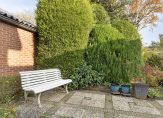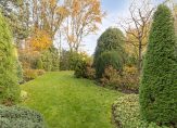 Het gazon, de brede borders met, in de zomerdag een kleurrijke beplanting en een mooie eikenhouten bossage aan de achterzijde maken de tuin tot een fantastische buitenruimte.