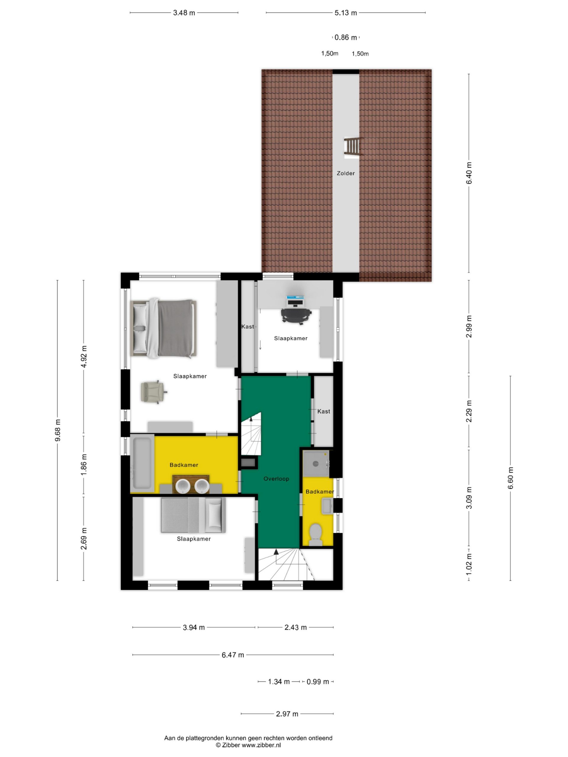 Op deze verdieping zijn een overloop, twee (slaap)kamers en meerdere bergingen/kasten. Beide slaapkamers hebben een raam in de buitengevel en in een van de kamers hangt de HR-ketel. Met name voor kinderen zijn dit superleuke kamers waar ze kunnen slapen, spelen en huiswerk maken.