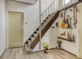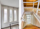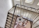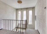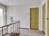 Volg de bordestrap naar de overloop, met grote ramen in de zijgevel waardoor de ruimte nog groter oogt. De paneeldeuren zijn behouden, net als de mooie trapbalustrade.