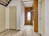Wat direct opvalt aan deze woning is de prachtige entree, met een gemetselde boog en een donkergroene voordeur. Achter deze deur is de royale hal met paneeldeuren, een hoog plafond en de bordestrap naar de eerste verdieping. Rechts in de hal is de toiletruimte en, heel verrassend, achter een van de andere deuren is een werkkamer/kantoorruimte.