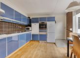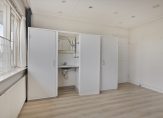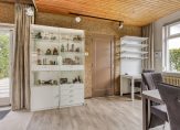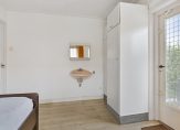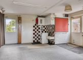 Niet alleen de woonkamer, maar ook de keuken is heel ruim. Een maatje groter is de bijkeuken, met een deur naar de oprit en een deur naar de achtertuin. Hier staat een retro werkbank en is onder andere plek voor de wasmachine, droger, een tweede koelkast en een vriezer. Gezien de grootte is de bijkeuken ook geschikt als woonkeuken of kantoor/praktijk, met een eigen entree aan de voorzijde.