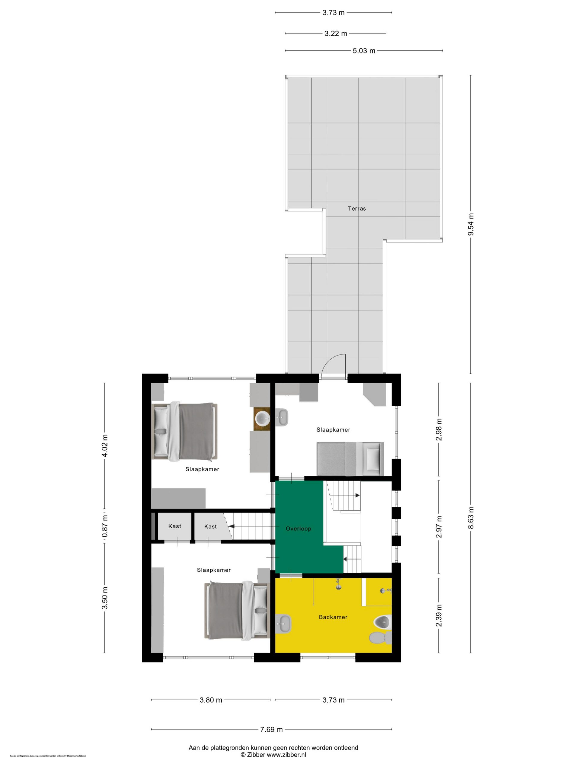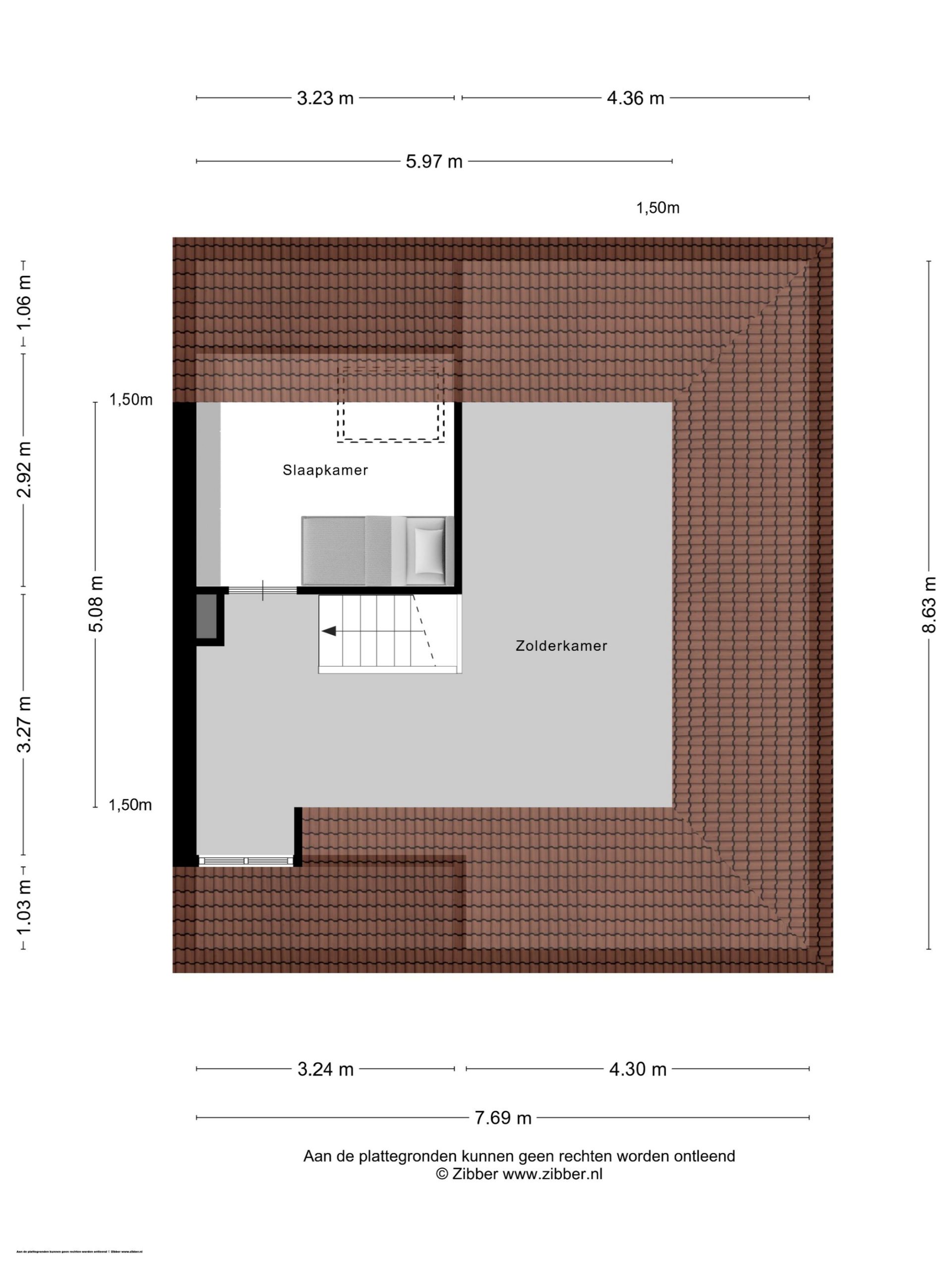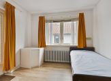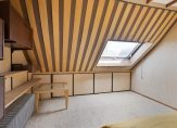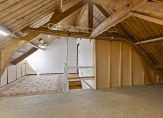 Een vaste trap geeft toegang tot de zolderkamer, met een dakkapel aan de achterzijde. Deze grote ruimte biedt de mogelijkheid om een ruime (slaap)kamer te realiseren. Aan de achterzijde is nu ook al een slaapkamer, met een groot raam in het schuine dak.