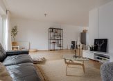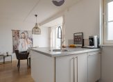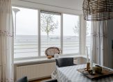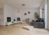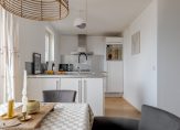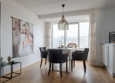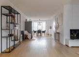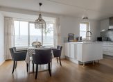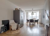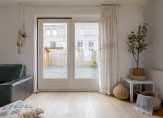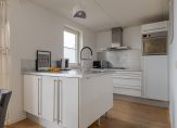 De woonkamer is een prettige leefruimte met openslaande deuren naar de tuin. De combinatie van lichtinval en de sfeervolle gashaard zorgt voor een warme uitstraling. De open keuken sluit hier mooi op aan en biedt voldoende ruimte voor een ruime eethoek.