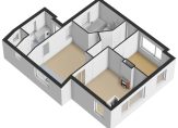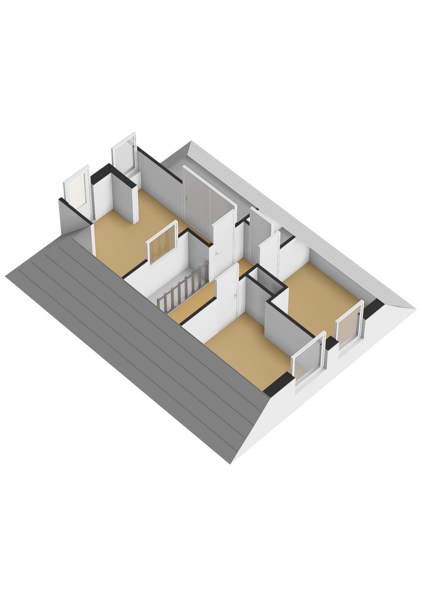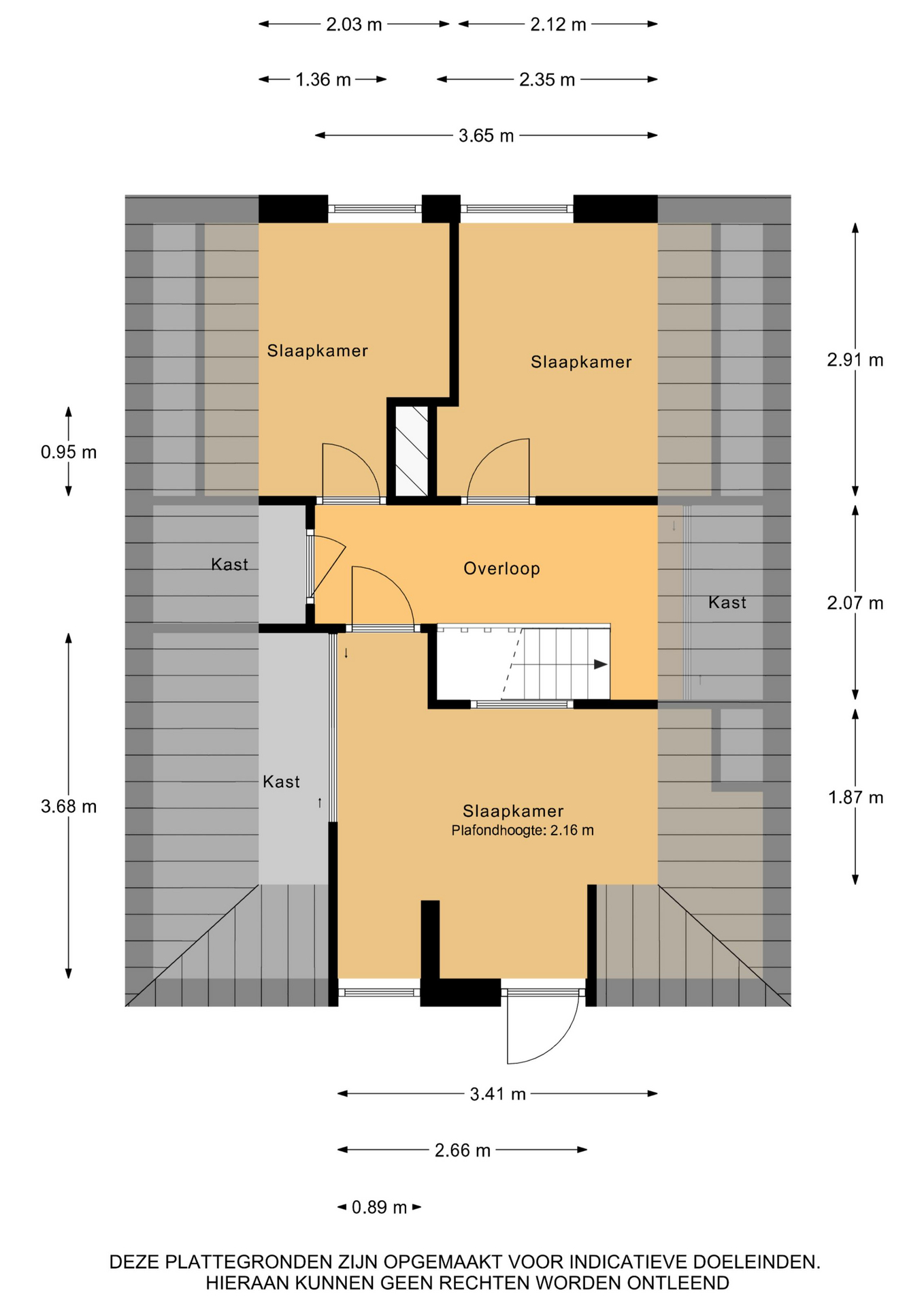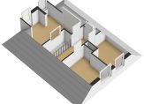 1e Verdieping: overloop met vaste kasten en bergruimte – drie slaapkamers.