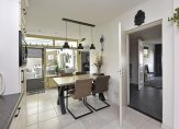 De keuken, in L-vorm opgesteld, is voorzien van diverse inbouwapparatuur zoals een vaatwasser, combimagnetron, inductiekookplaat, afzuigkap en koelkast. Daarnaast is er comfortabele vloerverwarming. Vanuit de keuken heb je toegang tot de badkamer, serre en bijkeuken.