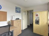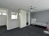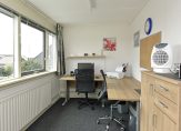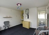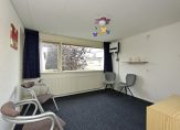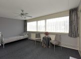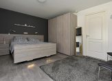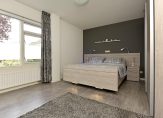 De aangrenzende slaapkamer bevindt zich aan de voorzijde van de woning en is via de badkamer én de hal te bereiken.