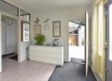 Via de voortuin bereik je de overdekte entree. In de hal vind je de meterkast, trapopgang, een toilet met fonteintje en deuren naar de slaapkamer en de woonkamer. De woonkamer is licht dankzij grote raampartijen aan de voor- en achterzijde en loopt over in de ruime woonkeuken, die in 2001 is gerealiseerd.